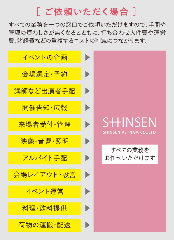 成長の大きな潜在力のある東南アジアのベトナムにおいてあらゆるコンベンションのサポートを行い、出会いの場を創ります。