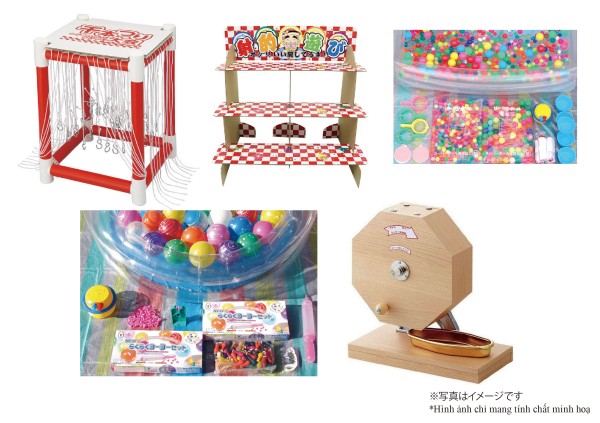Các trò chơi tiêu biểu: Bắn súng (Shateki), câu cá yo-yo (Yo-yo tsuri), vợt bóng nhựa (Super ball sukui), thả Daruma (Daruma otoshi), vạn dây may mắn mini (Mini senbonbiki), vòng quay may mắn (Garapon), v.v.